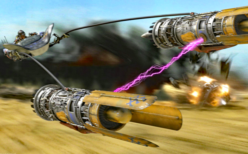 Anakin Skywalker’s Podracer is a homemade racing pod assembled by nine-year-old slave Anakin Skywalker on Tatooine, where he won the Riot Eve Classic races, thereby gaining freedom and helping to acquire parts for the hyperdrive of Queen Amidala’s ship.